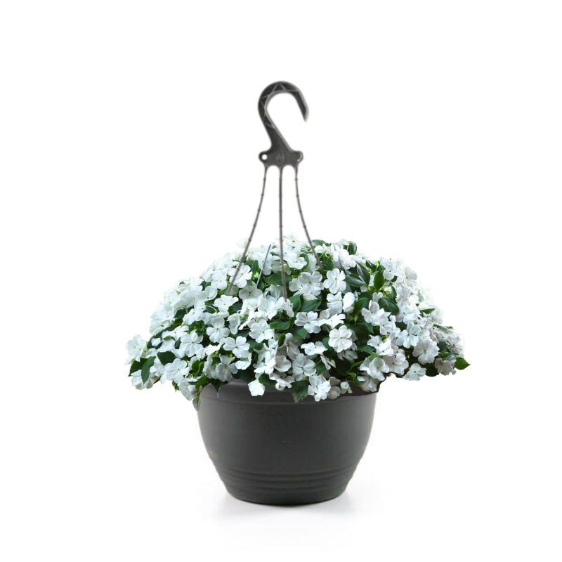Impatiens ‘White’ is a classic favourite. The distinctive flower forms over a spreading bush, with fuller flowers than the other impatiens varieties. It's a great choice for borders and containers, with its long flowering season from spring to fall. Cutback to keep this plant compact and water regularly.