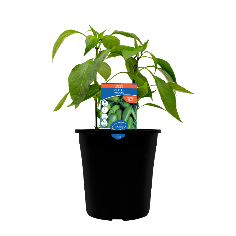Chilli ‘Jalapeno’ is a well-loved, medium-sized chilli with a mild to mid heat rating and green fruit that turns purple black to red with age. ‘Jalapeno’ thrives in direct sunlight and well-drained soil. Keep picking the tasty fruit to prolong the harvest. This variety is ideal in Mexican dishes and salsas; but it can also be pickled.