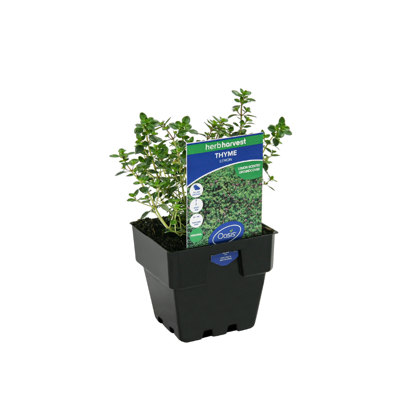 Thyme lemon is a hardy evergreen perennial with attractive lemon scented leaves and small yellow flowers appearing in Spring and Summer. Plant it as a ground cover between pavers in pots or the garden. Use as an essential ingredient in fish and poultry dishes, cream sauces, salads. Add to tea to relieve headaches. Lemon thyme is best used fresh.