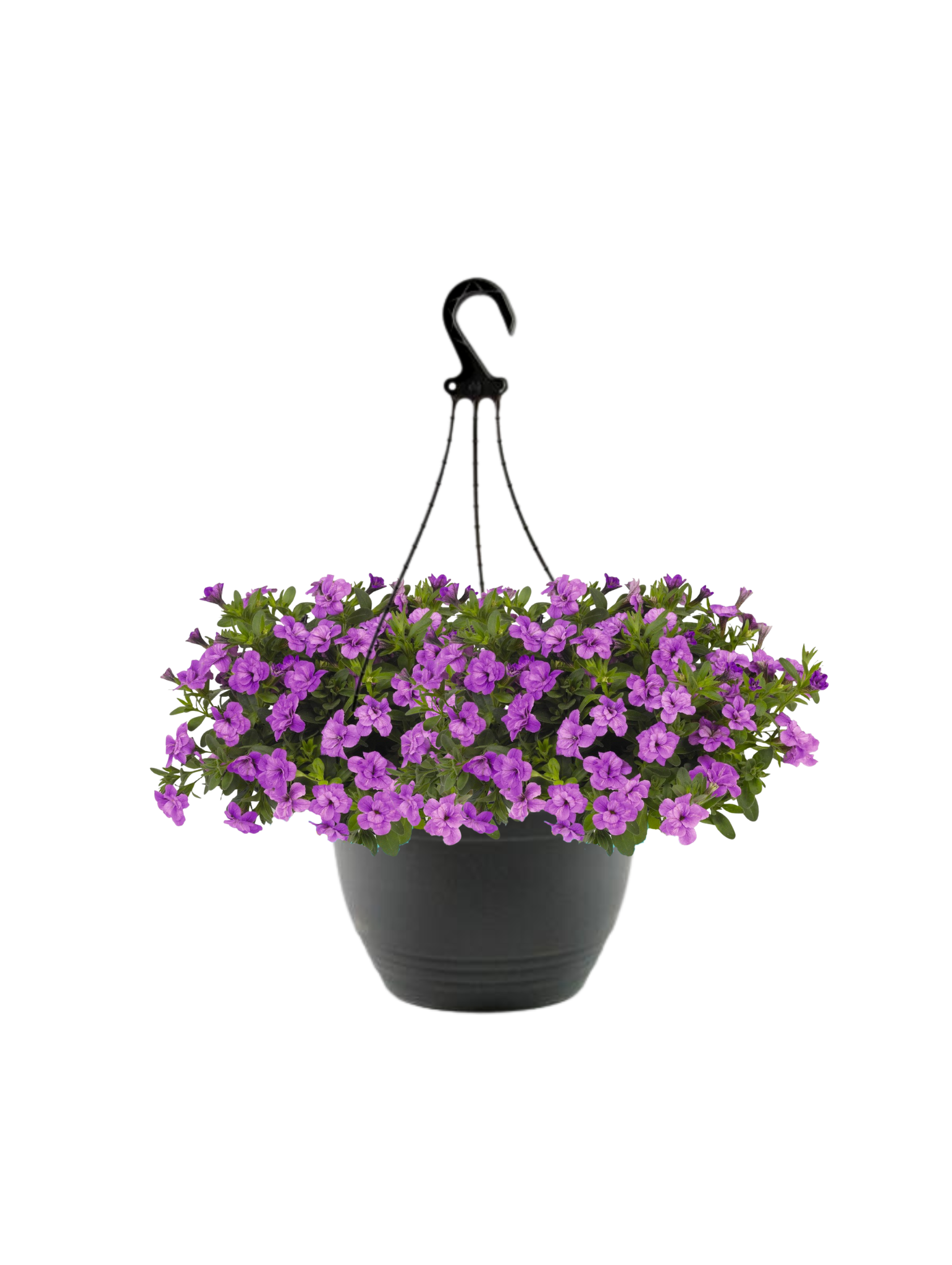 A simple way to add height and texture to a balcony or courtyard, with flower filled pots cascading over the sides of baskets. Hang your baskets at different heights to create a floral wall, or position them to draw the eye at a height along a veranda.