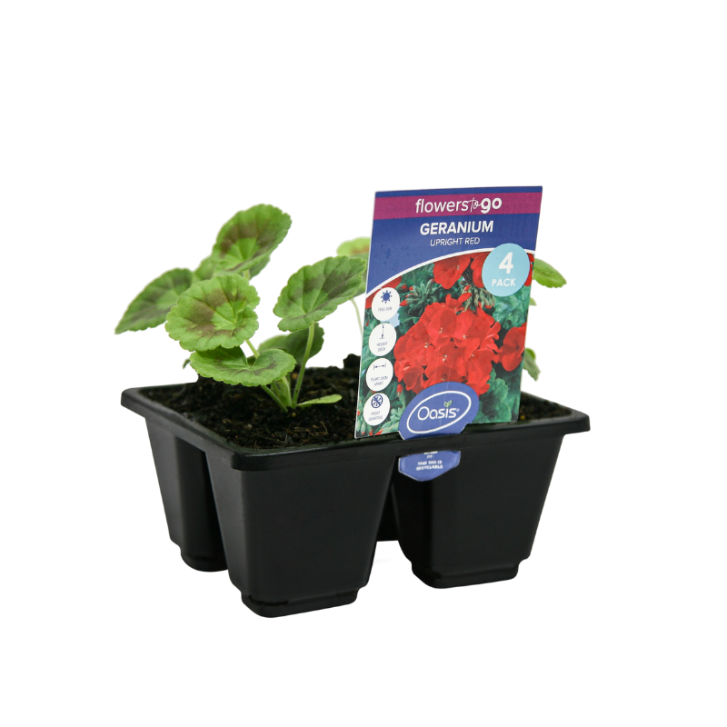 GERANIUM UPRIGHT RED FLOWERS TO GO 4 CELL PACK