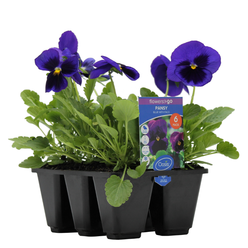 PANSY BLUE WITH FACE FLOWERS TO GO 6 CELL PACK