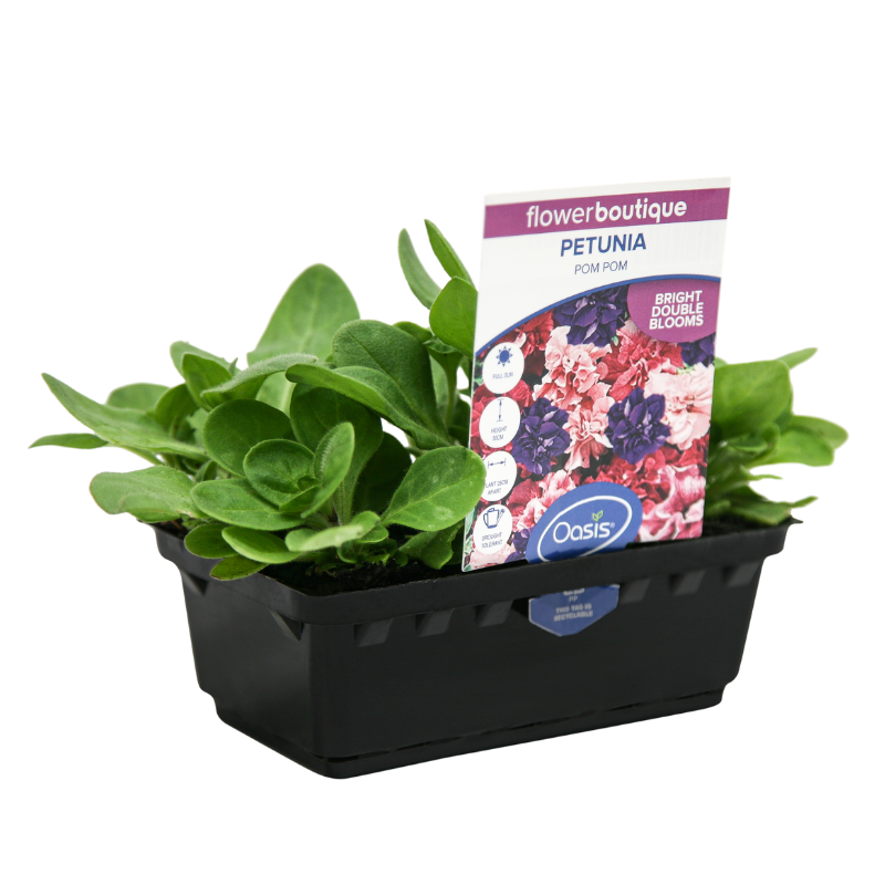 Petunia 'Pom Pom' is a delightful blend of flouncy double flowers in shades of soft pink, lavender, deep rose and magenta. These opulent looking blooms are medium sized and fully double on compact foliage. Petunias are hardy summer annuals that are easy to grow.