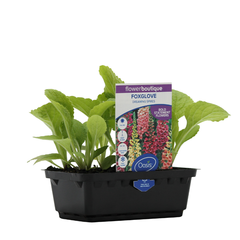 Foxglove 'Dreaming Spires' flowers within its first year and produces tall spires of bell-shaped flowers in pastel shades which are displayed against velvety foliage. Foxgloves (Digitalis) flower in spring and summer, preferring warm seasons and mild winters. Caution: Harmful if eaten
