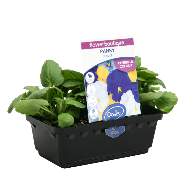 Pansy 'Seaside' is a perfect combination of butter yellow, snow-white and baby-doll blue and clear sky blue flowers. These fresh, cheery pansies are sure to brighten up your day. Pansies are the most popular of the cooler season annuals, flowering in every known colour combination.