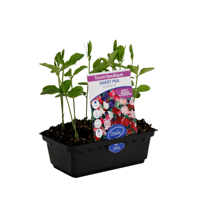 Sweet Pea 'colourcade' is an early flowering variety, and is characterised by its large flowers, strong perfume and climbing ability. Masses of pastel coloured flowers are produced in early Spring. Caution: Seeds can be toxic. Do not ingest.