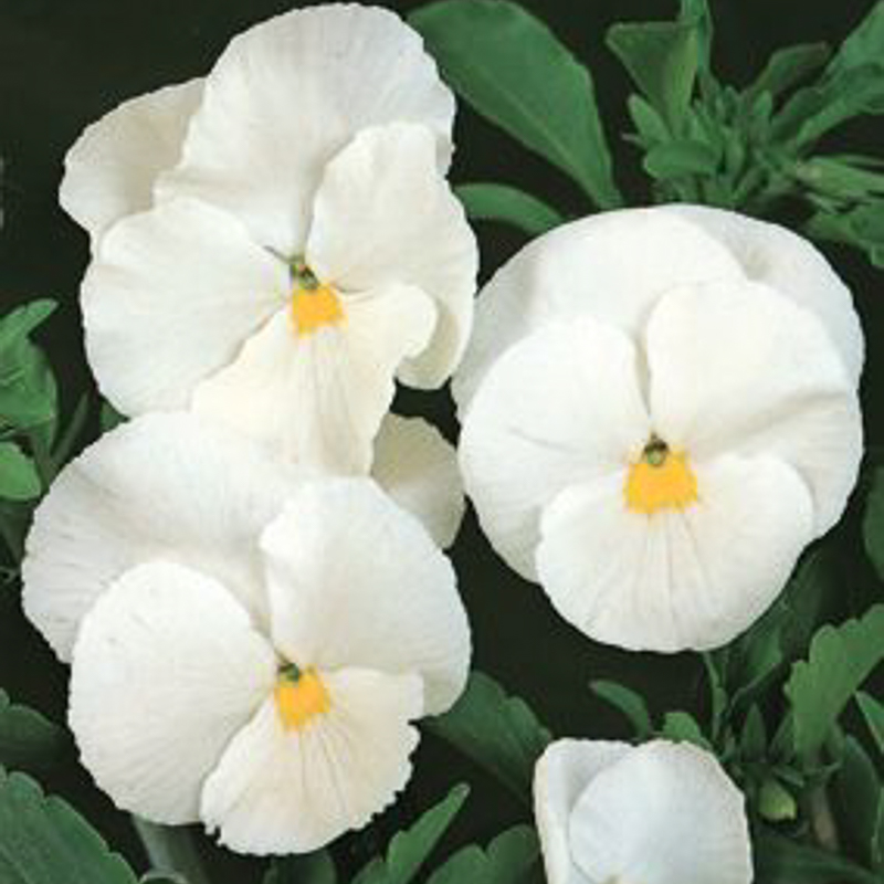 Pansy 'White' is a superbly bred pansy with a consistent, compact habit and large brightly coloured flowers. Pansies are the most popular of the cooler season annuals.