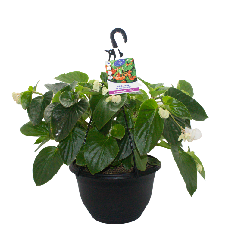 Heat-tolerant Begonia Dragon Wing is a vigorous, hardy perennial suitable for a wide range of garden situations. It has a glorious pendulous habit with arching branches bearing a proliferation of bright white blooms in spring and summer held against contrasting lush, glossy green foliage.