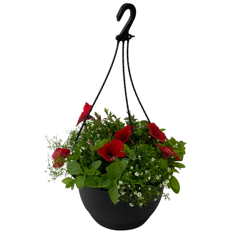 Festival 'Christmas Cheer' is a festive collection of seasonal flowering plants and herbs making up a beautiful hanging basket. Full of colour and variety to brighten up your patio, balcony, pergola or other outdoor living spaces.
