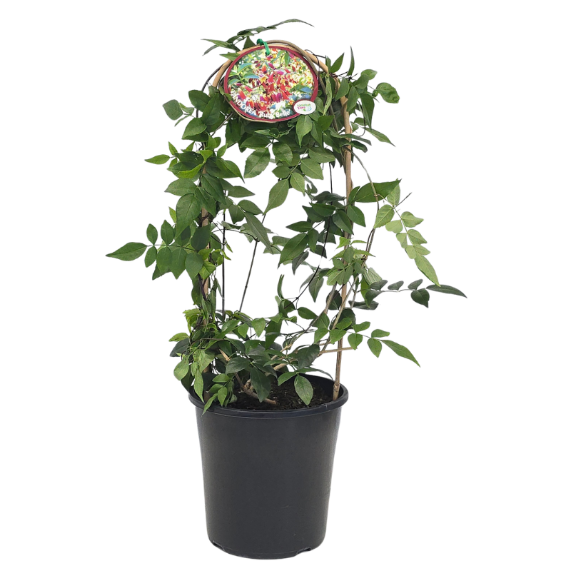 A twining, evergreen native climber (also known as Wonga Wonga Vine) that offers masses of ruby red, bell-shaped flower clusters with cream throats and glossy dark green foliage. It’s a fast growing variety that forms think dense coverage over fences, pergolas or structures to provide privacy screening and blooms from winter to spring.